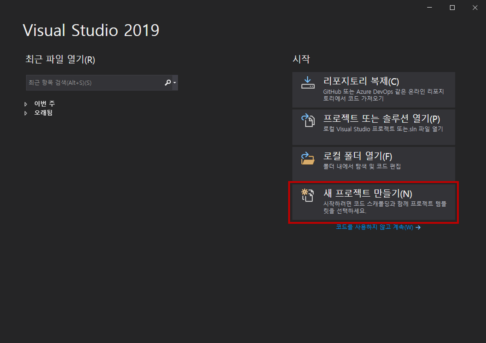 4) '프로젝트 이름' 및 '위치' 변경 후 '만들기' 클릭