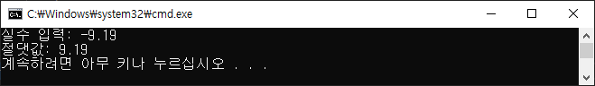 2. 키보드로 입력받은 실수의 절댓값 출력