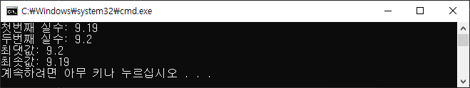 2. 실수 두개를 입력받고 큰 값과 작은 값 출력