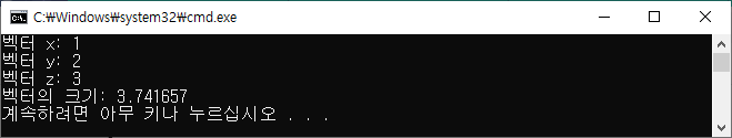2. 3차원 벡터 입력받고 벡터의 크기 구해서 출력