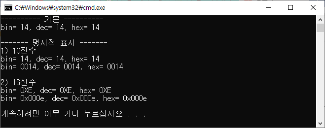 10진수, 16진수는 명시적 표시가 가능하지만,