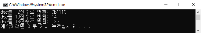 Console.WriteLine("dec를 2진수로 변환: 0B{0}", Convert.ToString(dec, 2));